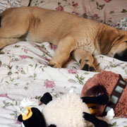 Sheba je velmi mohutná a vysoká fena. Je to fenka s milou povahou a klidným nekonfliktním charakterem. Má pěknou hlavu s dobře nasazeným uchem, korektní nůžkový skus. Velmi pěkný a široký hrudník, dobré úhlení končetin a výraznou až neobvyklou barvu.